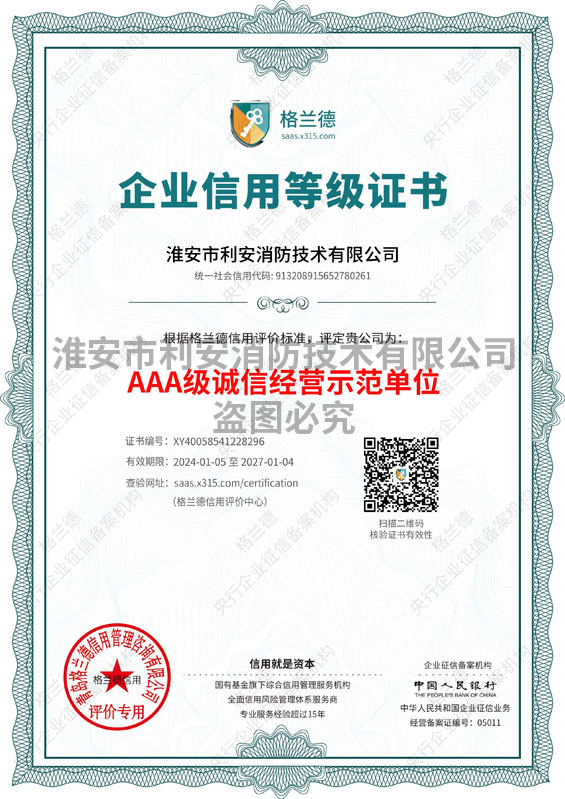您好,欢迎访问淮安市利安消防技术有限公司官方网站!